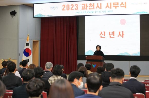 신계용 시장은 2023년은 △신나게 일하고 발전하는 스마트한 자족도시 구축 △꿈이 있는 인재양성과 미래를 선도하는 과천 △과천시민으로서의 자부심을 느낄 수 있도록 하는 선물같은 정책 추진에 힘써 나가겠다고 포부를 밝혔다.