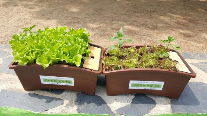 상자텃밭은 배양토와 모종이 세트로 구성되어 누구나 손쉽게 채소나 식물을 재배할 수 있고, 자동급수도 가능하여 물 관리도 편리하다.