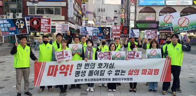 (비전21뉴스) 과천시 청소년유해환경감시단으로 활동하고 있는 법무부 청소년범죄예방위원 과천지구위원회에서는 지난 10일 중앙동과 별양동 등 상가 밀집 지역에서 시민을 대상으로 마약 범죄의 위험성을 알리는 캠페인을 전개했다.