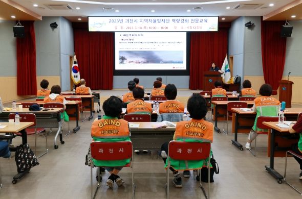 (비전21뉴스) 과천시는 18일 시청 대강당에서 지역자율방재단 단원 30여명이 참석한 가운데, ‘2023년 자율방재단 역량강화 전문교육’을 실시했다.
