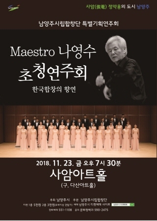 나영수 지휘자는 국립합창단 초대·3대 단장, 7대 예술감독을 역임했으며, ‘한국합창계의 대부’로 불리며 우리나라 합창음악의 선구자이자 산증인으로 합창계를 이끌어온 인물이다.