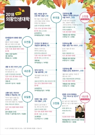 공간 공유의 평생학습 플랫폼인 의왕인생대학은 금융기관, 카페, 대학교, 예술가 작업실 등과 협력하여 지역주민의 요구를 반영한 다양한 강좌를 운영하고 있다. 이번 제4기 인생대학에서는 유현준 교수의 강연을 비롯해 반려동물 관리, 수제맥주 만들기, 연말요리 플레이팅 등 흥미로운 주제의 강좌들을 선보인다.