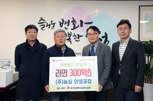 농심 안성공장은 1982년 설립되어 전 국민에게 사랑받는 안성탕면 등의 라면스프를 주요제품으로 생산하고 있으며, 지난 몇 년간 직원들의 자발적인 모금을 통해 매년 꾸준한 이웃사랑을 실천해오고 있다. 지난 2015년엔 라면 500박스, 2016년과 2017년에는 각각 300박스를 연말에 기탁하여 어려운 이웃들이 따뜻한 겨울을 보낼수 있도록 지원하였으며, 올해도 직원들이 매월 모은 성금으로 라면을 구입해 기탁했다.