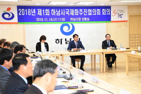 [비전21] 하남시는 지난 14일 시청 상황실에서 국제화추진협의회를 열고 국제협력과 우호증진을 위한 아이디어를 모았다. 이번 회의는 국승현 부회장을 비롯해 새로 구성된 협의회 위원 22명이 참석하여 ‘미국 리틀락시·말레이지아 샤알람시와 진행하고 있는 자매도시 간 상징조형물 교류사업과 미국 오렌지카운티 축구 민간교류와 베트남 우호교류’ 등 제안 건을 집중적으로 논의했다.