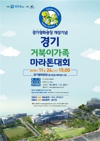 이번 ‘경기 거북이 가족 마라톤 대회’는 남녀노소 누구나 참여할 수 있는 가족 걷기대회로, 북부청사 앞 경기평화광장에서 출발해 부용천 일원 3km를 걷는 방식으로 진행된다.