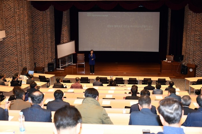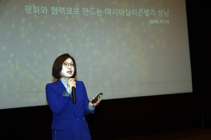 은수미 성남시장은 15일 수정구 시흥동에 위치하고 있는 세종연구소 대강당에서 ‘평화와 협력으로 만드는 아시아실리콘밸리 성남’을 주제로 강연을 진행했다.