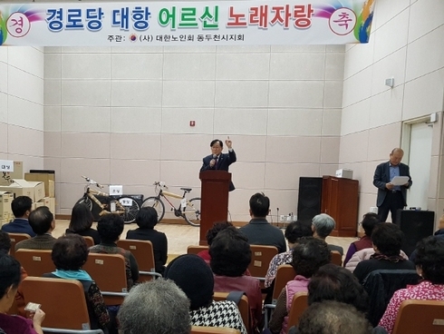[비전21] 대한노인회 동두천시지회는 지난 14일 동두천시 노인복지관 4층 강당에서 “제3회 경로당 대항 어르신 노래자랑 대회”를 개최했다. 경로당 대항 어르신 노래자랑 대회 참가자는 지난 7일 예심을 거쳐, 지회장 및 지회 고문, 경로당 회장 등 150여 명의 어르신들과 이성수 시의장 및 시의원이 참석한 가운데 노래실력을 겨루었다.