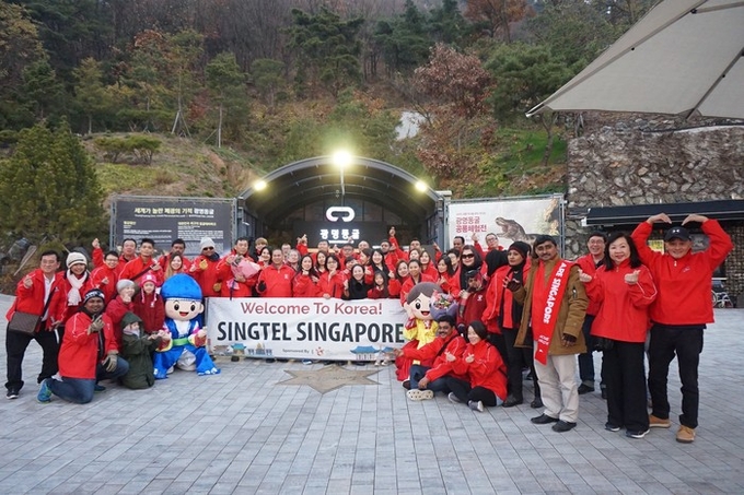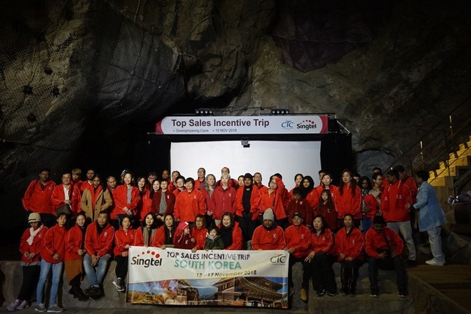 싱가포르 전기통신기업인 싱텔(싱가포르 텔레콤)의 판매 우수 직원 60명이 지난 15일 대한민국 최고의 동굴테마파크인 광명동굴을 찾았다.