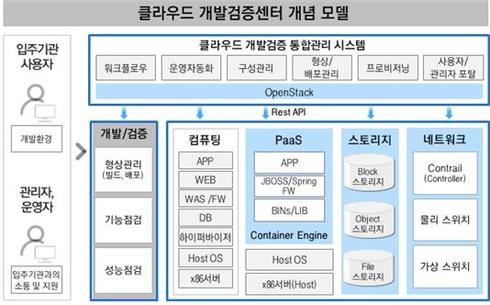 또한, 이러한 기반 위에서 입주기관 사용자가 직접 자원을 신청하고, 할당받아 운영하는 프로세스 구현을 통해 자동화된 환경에서 클라우드 전환에 필요한 사전 테스트를 수행할 수 있는 환경을 제공한다.