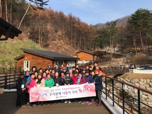 [비전21] 구리시는 지난 16일 ‘한국산림복지진흥원 녹색자금 지원’으로 경기도 양평군 국립양평 치유의 숲에서 취약 계층 독거노인 30여명을 대상으로 ‘머무름의 숲’ 체험 프로그램을 진행했다.