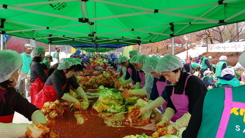 이날 행사에는 손정화 새마을부녀회장, 박종선 새마을협의회장 및 각 읍면동 새마을남녀지도자 등 300여명이 참석한 가운데, 특히 올해에는 캠프험프리 소속 주한미군 20여명이 참여하여 새마을지도자와 함께 배추 5천포기를 2일에 걸쳐 절이고 버무리는 과정을 함께하며, 한국의 전통적인 김장 문화 체험을 할 수 있는 기회가 되어 매우 뜻깊은 행사가 됐다.