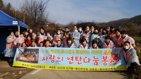 홍봉식 64하내천봉사대 회장은“우리 회원들의 작은 손길이 모여 관내 어려운 분들의 얼굴에 번지는 미소를 볼 수 있어 감사하고, 따뜻한 겨울나기에 도움을 드릴 수 있게 되어 기쁘다.”며 소감을 밝혔다.