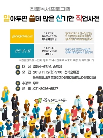 시 도서관 진로독서프로그램인 알쓸신직의 일부로 운영되는 21일 행사는 과학동아천문대 김영진 천문대장의 천문연구원 직업 체험 특강과 천체망원경을 통해 볼 수 있는 겨울 밤하늘의 천체를 관찰하는 활동으로 진행될 예정이다.