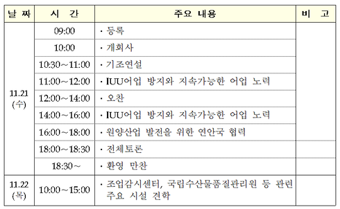 특히 22일에는 참석자들을 직접 조업감시센터 등으로 초청하여 우리나라의 IUU어업 방지를 위한 노력과 노하우 등을 설명할 예정이다.
