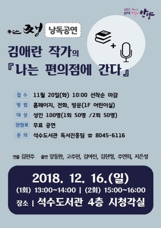 공연은 12월 16일 오후 1시, 오후 3시 총2회 안양시립석수도서관 4층 시청각실에서 무료로 진행되며, 도서관 홈페이지, 방문, 전화 등을 통해 선착순으로 사전 접수한다.