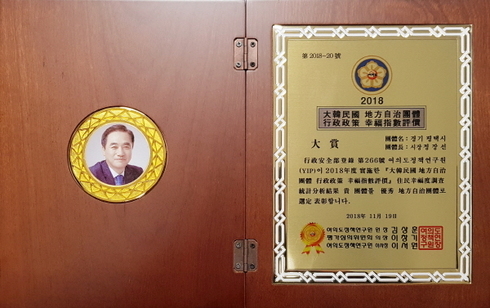 정 시장은 “행복정책을 바라는 시민의 관심과 묵묵히 시책을 수행해준 직원들이 있었기에 이런 영광스런 상을 받게 됐다”며 “앞으로도 정책 발굴과 시민 중심의 시정운영을 통해 시민의 행복지수가 높은 새로운 평택을 만들겠다”고 수상소감을 밝혔다.