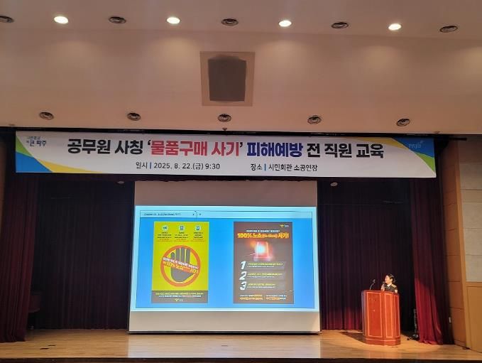 (비전21뉴스) 파주시는 최근 전국적으로 확산되고 있는 ‘공무원 사칭 물품구매 사기’로부터 피해를 예방하고 직원들의 대응 역량을 강화하기 위해 지난 22일 시민회관 소공연장에서 전 직원을 대상으로 예방 교육을 실시했다고 밝혔다.