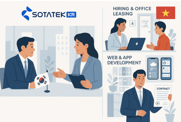 소타텍은 또한 한국 기업들이 베트남에서 성공적으로 운영을 시작할 수 있도록 다음과 같은 서비스도 제공한다: △ 베트남 IT 인재 채용 및 임대(단기 및 장기), △ 사무실, 코워킹 스페이스 및 지사 대표 사무소 임대, △ 베트남에서의 법률, 세금, 투자 및 회사 운영 절차에 대한 컨설팅, △ 물류, 유통, 마케팅 분야의 현지 파트너 연결.