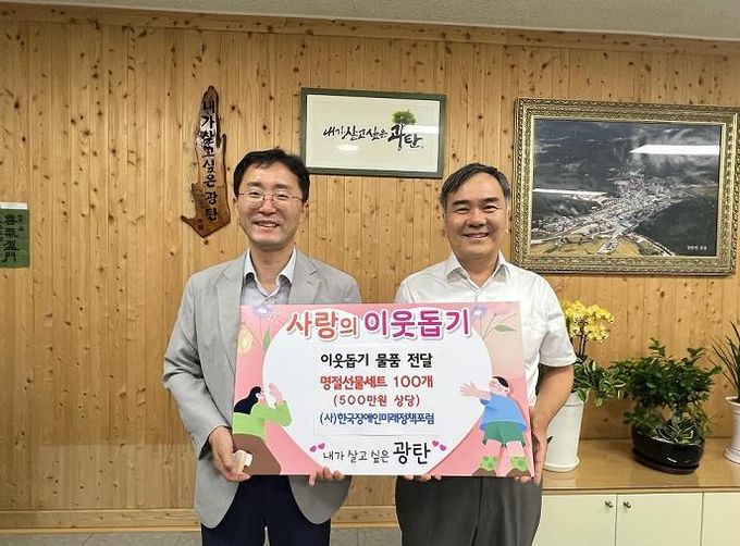 이재욱 광탄면장은 “매년 꾸준히 나눔을 실천해 주시는 (사)한국장애인미래정책포럼에 깊이 감사드린다”라며 “소외되는 이웃 없이 모두가 함께 행복한 명절을 맞이할 수 있도록 최선을 다하겠다”라고 전했다.