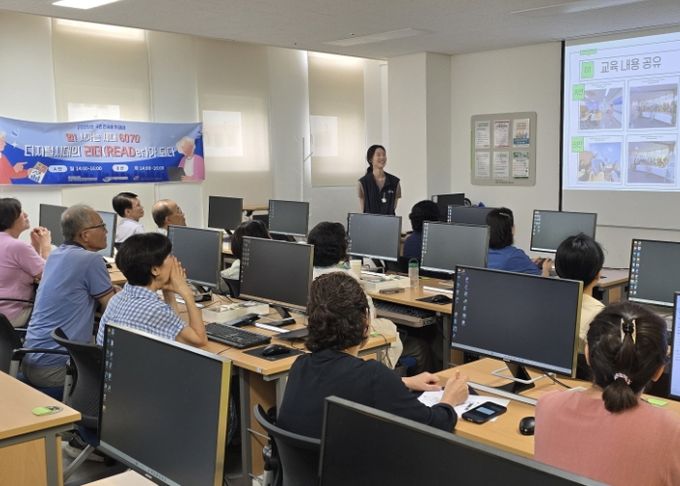 ‘디지털시대의 리더(READer)가 되다’는 국민연금 나눔재단의 지원을 받아 만 60세 이상 국민연금 수급자 34명을 대상으로 AI인공지능 교육, 재무교육, 스마트폰 교육을 주제로 진행하는 사업이다.