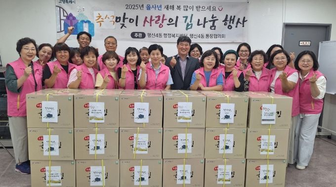 (비전21뉴스) 고양특례시 덕양구 행신4동 통장협의회는 지난 17일 추석 명절을 맞아 관내 저소득 가구와 독거노인 등 어려운 이웃에게 사랑의 김 100박스를 전달했다.