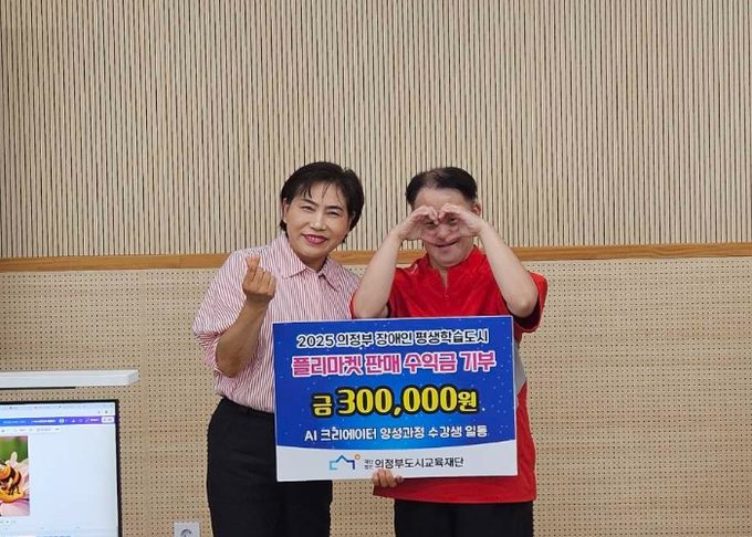 (비전21뉴스) 의정부도시교육재단은 장애인평생학습도시 사업의 일환으로 운영된 'AI 크리에이터 양성과정' 장애인 수강생들이 직접 제작한 상품 판매 수익금을 지역사회에 기부했다고 30일 밝혔다.