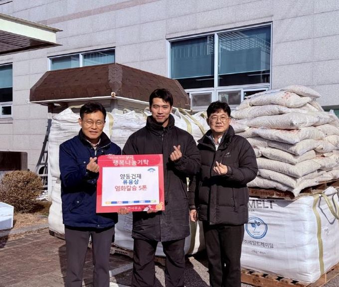 (비전21뉴스) 양평군 양동면은 지난 19일 양동건재 류용상 씨가 양동면사무소를 방문해 겨울철 제설작업에 사용될 염화칼슘 5톤을 기탁하며 지역사회 안전과 이웃사랑 실천에 동참했다고 밝혔다.