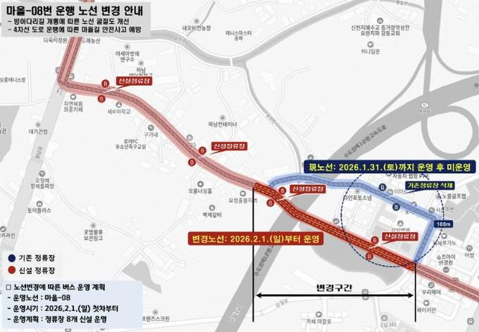 기존 노선은 2026년 1월 31일까지 운영되며, 2월 1일 첫차부터는 변경된 노선으로 본격적인 운행을 시작한다.
