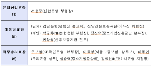 대통령 표창(단체)은 경남은행과 전남신용보증재단이 수상했다.