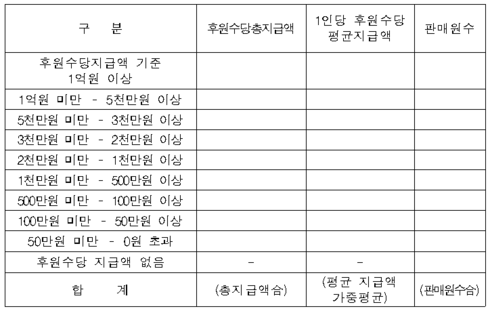 아울러, 현행 판매원 구간별 후원수당 지급분포도를 전체 판매원을 대상으로 한 경우와 후원수당을 지급 받는 판매원만을 대상으로 한 경우로 나누어서 각각 공개하는 것을 명문화하는 등 정보공개 고시를 일부 보완했다.