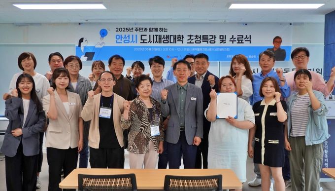 (비전21뉴스) 안성시 도시재생지원센터는 지난 5월 31일, ‘2025년 안성시 도시재생대학’ 수료식을 개최하며 약 두 달간의 교육 여정을 성공적으로 마무리했다. 이번 행사는 정운길 단장을 비롯해 수강생 20여 명이 참석했다.