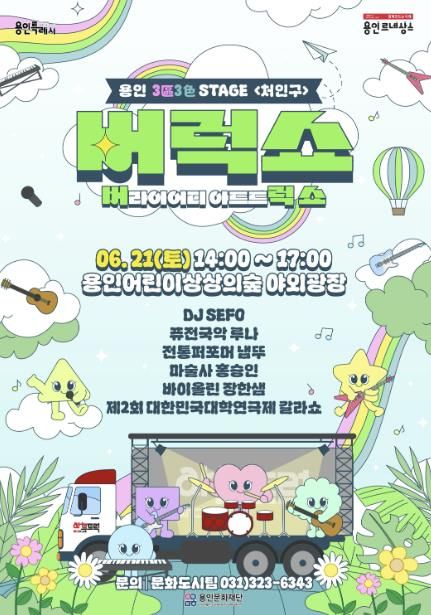 (비전21뉴스) 용인문화재단은 오는 6월 21일 용인어린이상상의숲 광장에서 2025 아트트럭 기획공연 『용인 3區3色 STAGE : 처인구 《버라이어티 아트트럭 쇼》』를 개최한다.