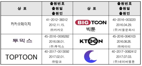 특허청에 따르면 인터넷 창작물의 대표적인 장르로 자리 잡고 있는 웹툰산업은 만화, 게임 등 그 영역을 점차 확대하고 있으며, 상표출원 역시 2012년 1,571건, 2013년 1,804건, 2014년 1,631건, 2015년 1,978건, 2016년 3,070건이 출원돼 최근 5년간 연평균 14%의 증가율을 기록한 것으로 조사됐다.