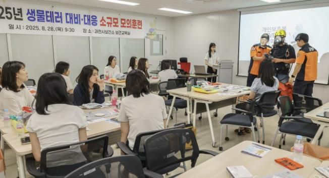 (비전21뉴스) 과천시는 28일 보건소 보건교육실에서 ‘2025년 생물테러 대비 소규모 모의훈련’을 열고, 보건소, 과천경경찰서, 과천소방서 등 유관기관 관계자 20여 명이 참여한 가운데 합동 대응체계를 점검했다고 밝혔다.