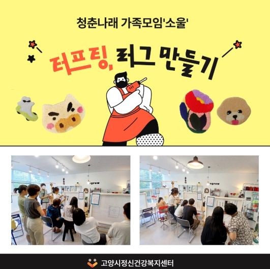 (비전21뉴스) 고양시정신건강복지센터 청춘나래팀은 지난 27일 정신건강에 어려움을 겪고 있는 청년과 그 가족 14명을 대상으로 ‘터프팅 러그 만들기’ 문화예술 체험을 진행했다.