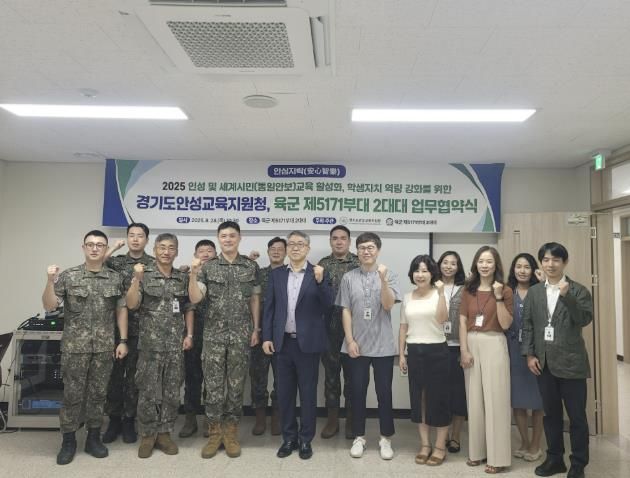 (비전21뉴스) 경기도안성교육지원청과 육군 제5171부대 2대대는 2025년 8월 28일 오전 10시, 제5171부대 2대대에서 안성지역 학생들의 인성·세계시민교육과 학생자치 역량 강화, 통일안보교육 활성화를 위한 업무협약(MOU)을 체결했다.