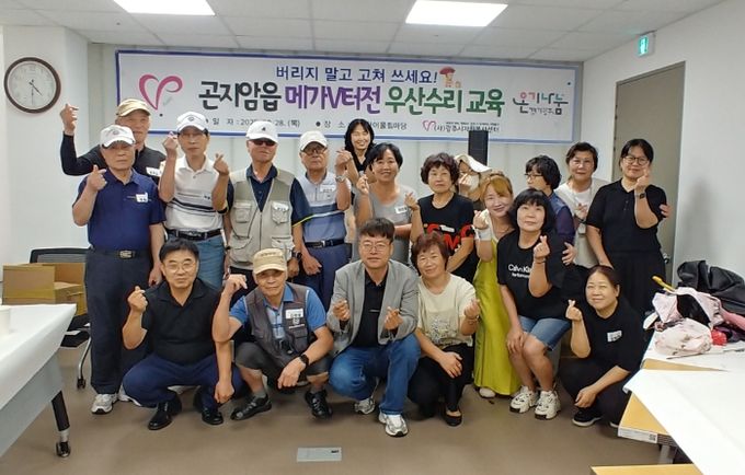 (비전21뉴스) 사단법인 광주시자원봉사센터는 지난 28일 곤지향어울림마당에서 곤지암읍 메가V터전 사업 일환으로 ‘우산수리교육’을 진행했다.