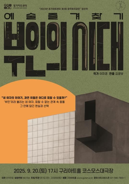 (비전21뉴스) 구리문화재단은 오는 9월 20일 구리아트홀 코스모스 대극장에서 경기아트센터와 경기도극단의 ‘2025 예술즐겨찾기 '부인의 시대'’를 선보인다.
