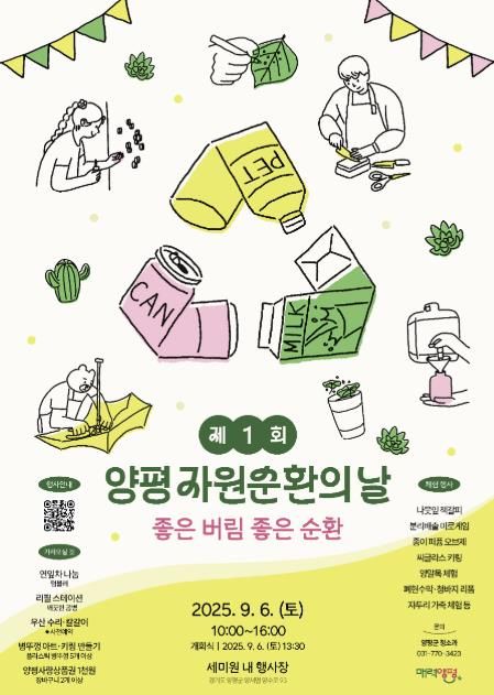 한편, 양평군은 이번 행사를 계기로 매년 9월 첫째 주를 ‘자원순환 주간’으로 지정하고, 지속적인 교육과 캠페인을 통해 군민과 함께하는 친환경 실천 문화를 확대해 나갈 계획이다.