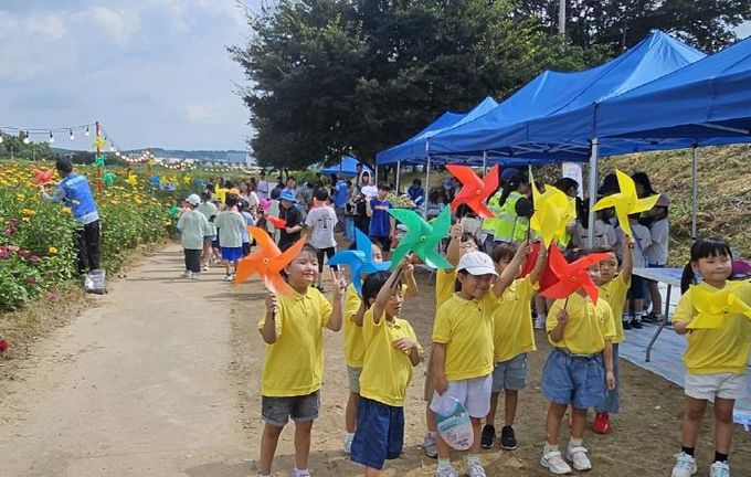 (비전21뉴스) 일죽면 주민자치위원회는 지난 8월 29일 청미천 일대 백일홍 꽃밭에서 관내 유치원생 및 초등학생들 150여 명과 함께 환경정화 활동 및 백일홍 꽃밭을 배경으로 하는 사진 경연 및 바람개비 만들기 행사를 진행했다.