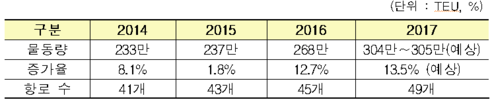 또한, 컨테이너 300만TEU는 일렬로 연결하면 서울과 부산을 24번 왕복할 수 있는 규모이기도 하다.