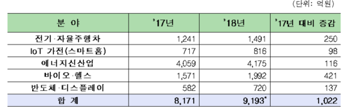 산업기술 R&D 예산이 2017년 대비 소폭 감소했지만, 미래신산업· 주력산업 지능화 등 혁신성장을 위한 중점투자 분야 예산을 2017년 1조 5,507억원에서 2018년 1조 6,624억원으로 증액 편성했다.