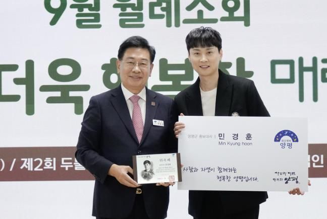 (비전21뉴스) 양평군은 3일 군청 대회의실에서 열린 9월 월례조회에서 가수 민경훈을 양평군 홍보대사로 위촉했다.
