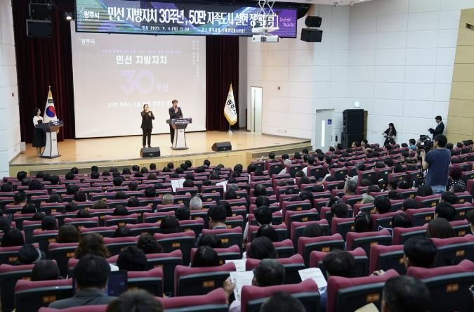 행사는 한국지방행정연구원 고경훈 박사의'지방자치 30년의 의의' 강연을 시작으로, 광주시립광지원농악단의 기념공연과 축하영상 상영이 이어졌다. 영상에는 광주시 30년의 변천사와 시민들의 축하 메시지가 담겨 큰 공감을 얻었다.