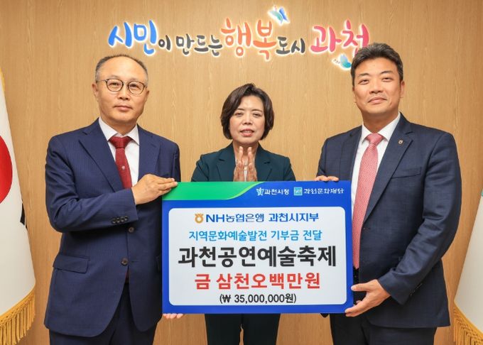 신계용 과천시장은 “과천시가 문화예술 도시로 나아갈 수 있도록 협력해 주시는 NH농협 과천시지부에 깊이 감사드리며, 기부금은 시민 모두가 체감할 수 있는 문화예술 사업에 소중히 활용하겠다”라고 전했다.
