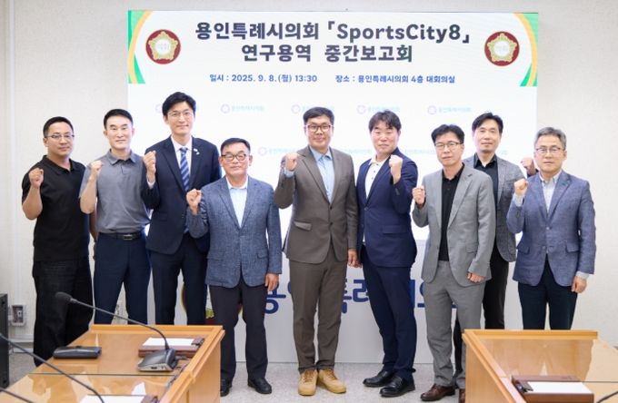 (비전21뉴스) 용인특례시의회 의원연구단체 'Sports City(스포츠시티) 8'(대표 임현수)은 8일 의회 대회의실에서 연구용역 중간보고회를 개최했다.