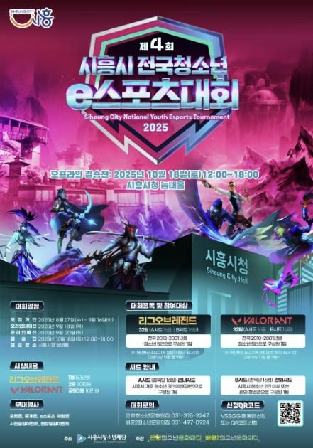 참가 신청은 8월 27일부터 9월 16일까지 가능하며, 홍보물 내 QR코드 또는 VSS.GG 홈페이지에서 접수할 수 있다. 오리엔테이션은 9월 18일, 예선전은 9월 20일에 진행된다. 결승전은 오는 10월 18일 ‘2025년 제10회 시흥시청소년동아리축제’와 함께 진행될 예정이다.