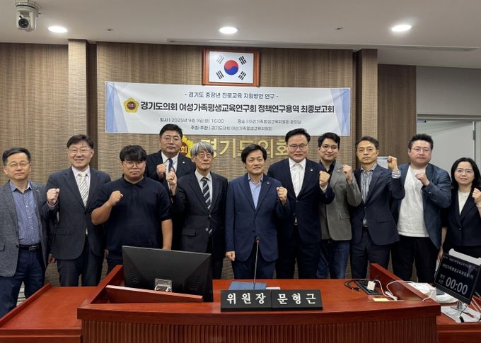 (비전21뉴스) 경기도의회 여성가족평생교육연구회는 9월 9일 오후에 경기도의회 여성가족평생교육위원회 회의실에서 '경기도 중장년 진로교육 지원방안 연구' 최종보고회를 개최했다.
