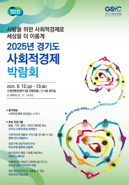 경기도와 경기도사회적경제원은 오는 12~13일 양일간 수원컨벤션센터에서 ‘2025년 경기도사회적경제박람회’를 연다고 10일 밝혔다.