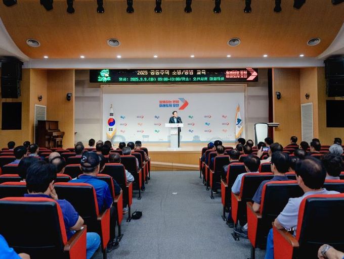 (비전21뉴스) 오산시는 지난 9일, 시청 대회의실에서 관내 의무관리대상 공동주택 106개 단지의 입주자대표회의 구성원과 관리주체 등 340여 명이 참석한 가운데 ‘2025년 공동주택 소방안전·방범 및 입주자대표회의 운영·윤리교육’을 실시했다고 밝혔다.